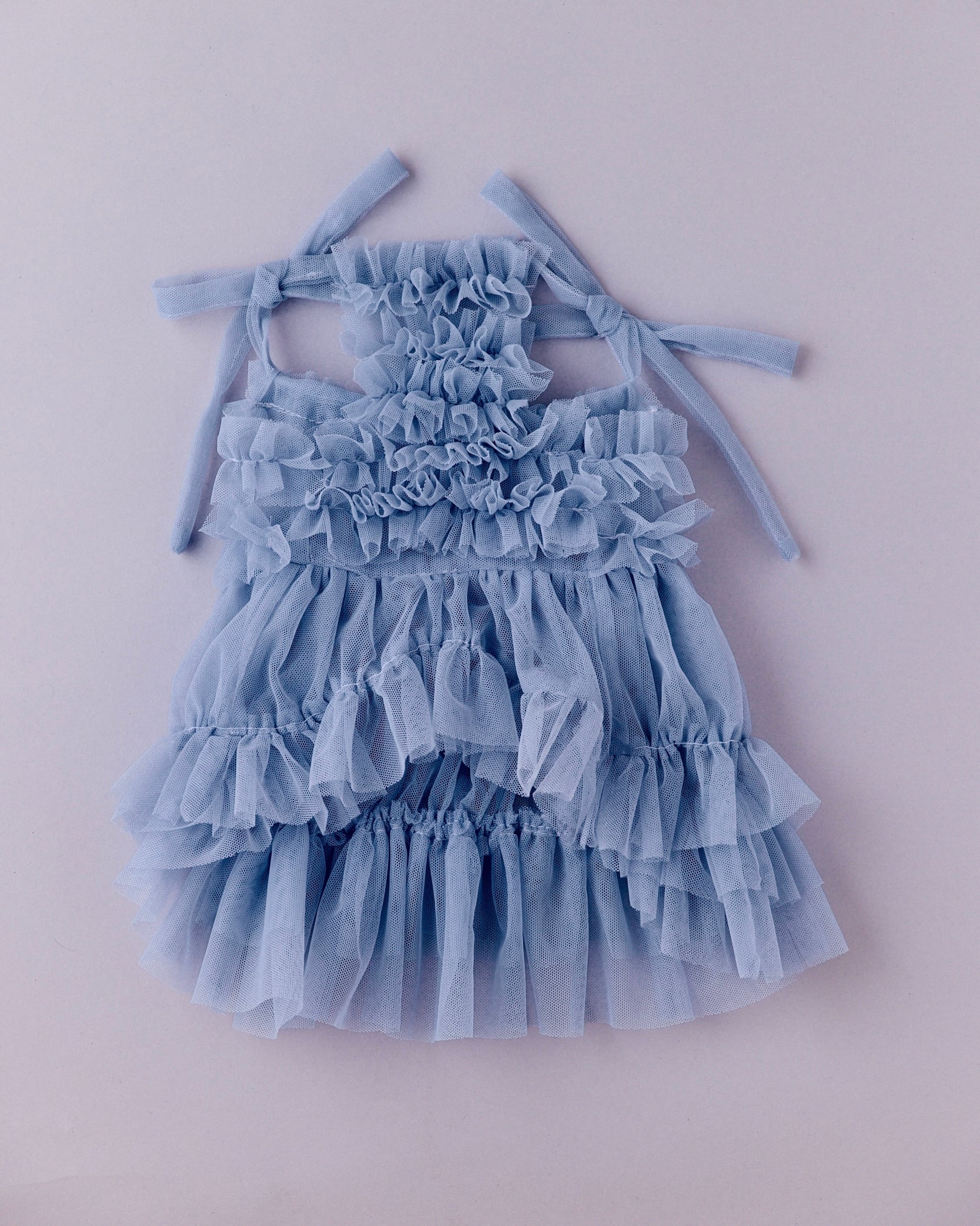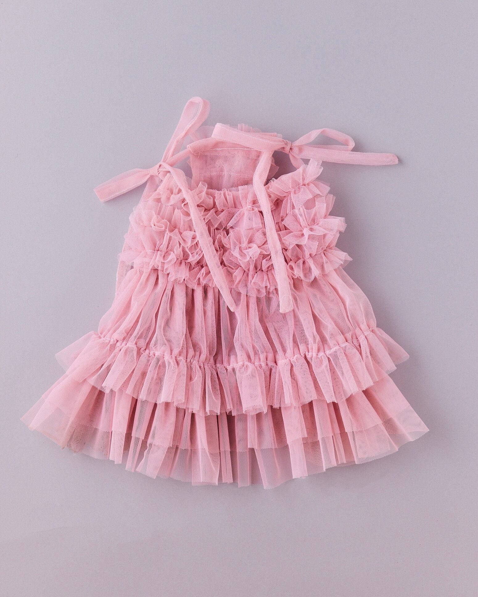 A voluminous tiered dress made with layers of airy soft tulle.