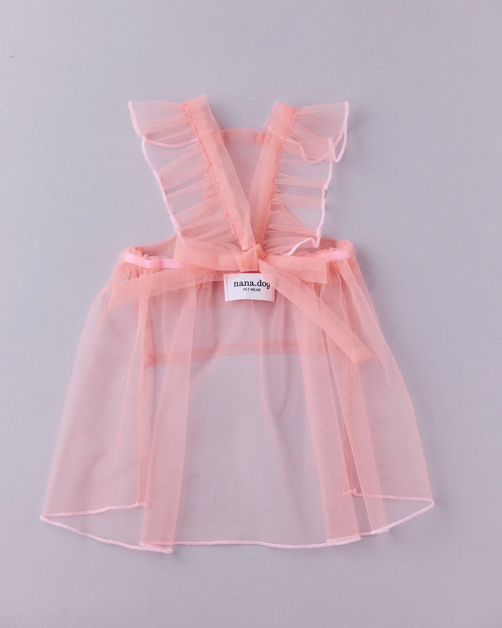 肩紐は背中のループに通してリボン結びする仕様で、見た目の可愛さと着せやすさを両立。